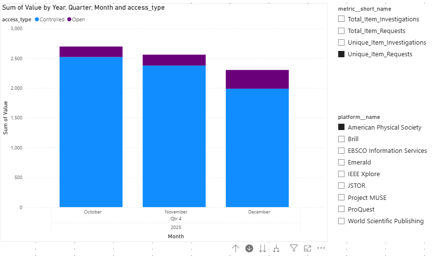 This template is designed to help you visualize how library resources are used over time, specifically categorized by their Access Type. It allows you to see the balance between the material that is only available to authorized users and the content available as Open or Free To Read.
