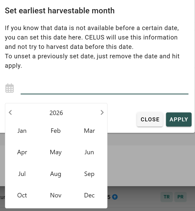 In CELUS, you have the ability to specify a point in time beyond which data becomes unharvestable. This typically happens when publishers cease supplying historical data for months starting from a particular date. Once you set the "Last Harvestable Month" in CELUS, the system discontinues its automatic data retrieval efforts for periods preceding this specified month.