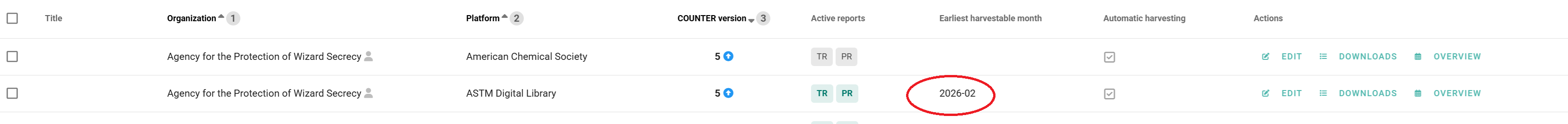 4. You can now see the earliest harvestable month in the list of SUSHI credentials:
