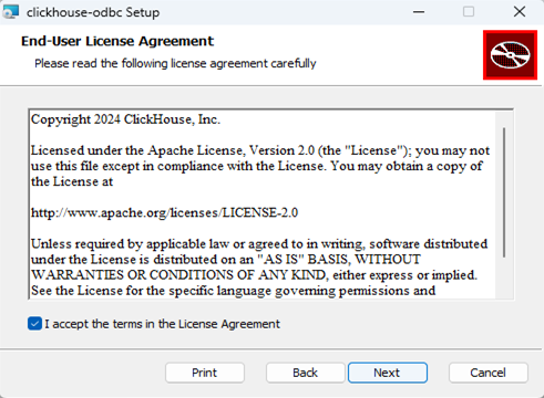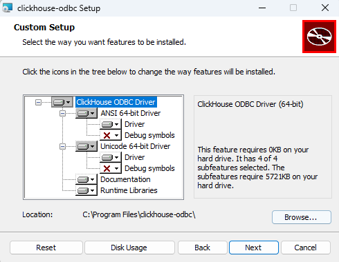 If not, download the latest non-beta version free from ClickHouse ODBC release and execute the supplied installer.