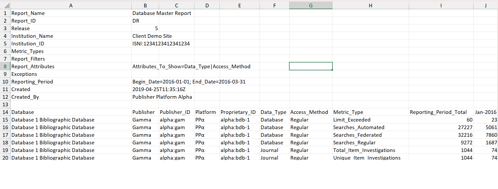 Reports on key Searches, Investigations and Requests metrics needed to evaluate a database.