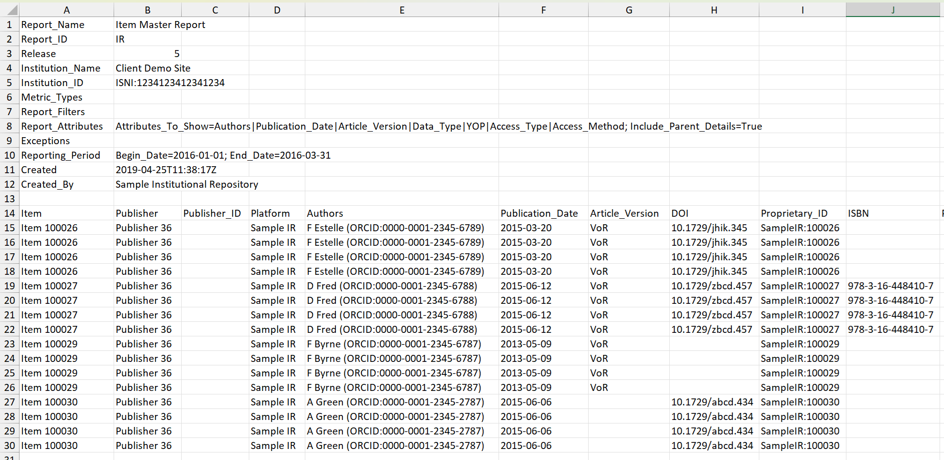 A granular, customizable report showing activity at the level of the item (article, chapter, media object, etc.) that allows the user to apply filters and select other configuration options.