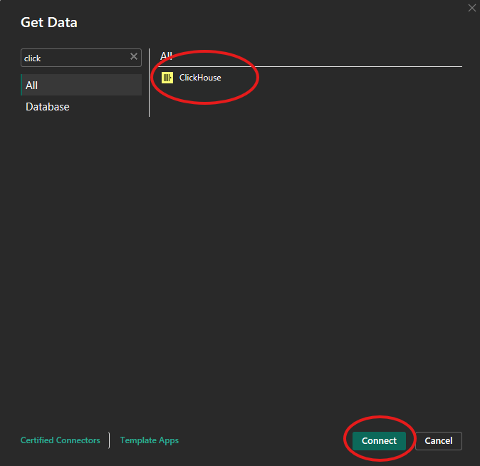 Choose ClickHouse as a data source and click on Connect