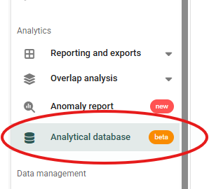 In the left side menu / Analytics / Analytical database…