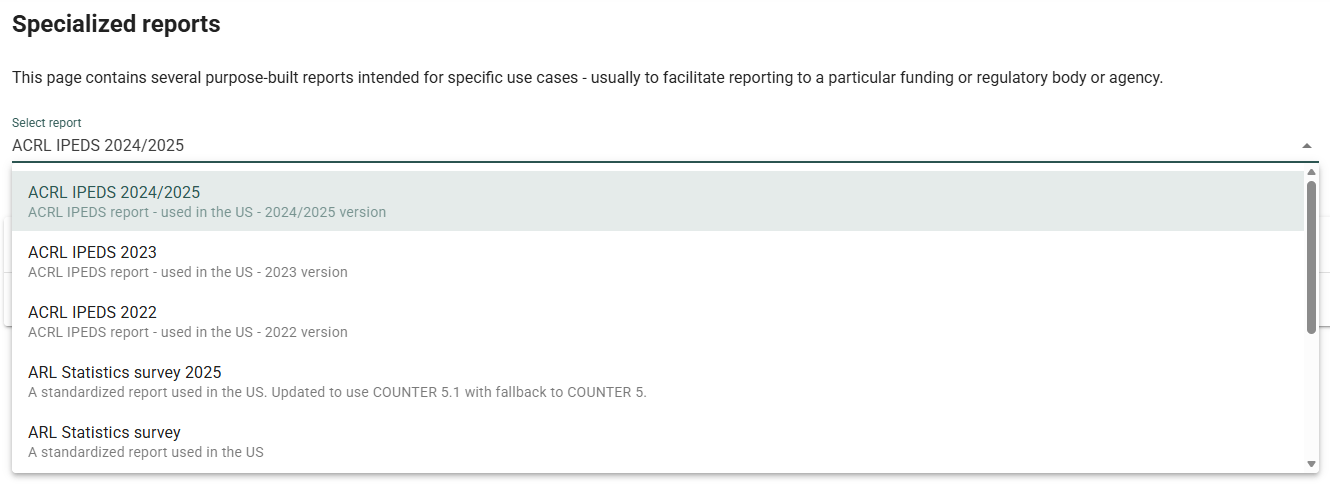Under “Select report”, you can choose a specific report from the drop-down menu: